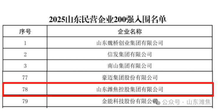 集团公司荣登2025山东民营企业百强榜单
